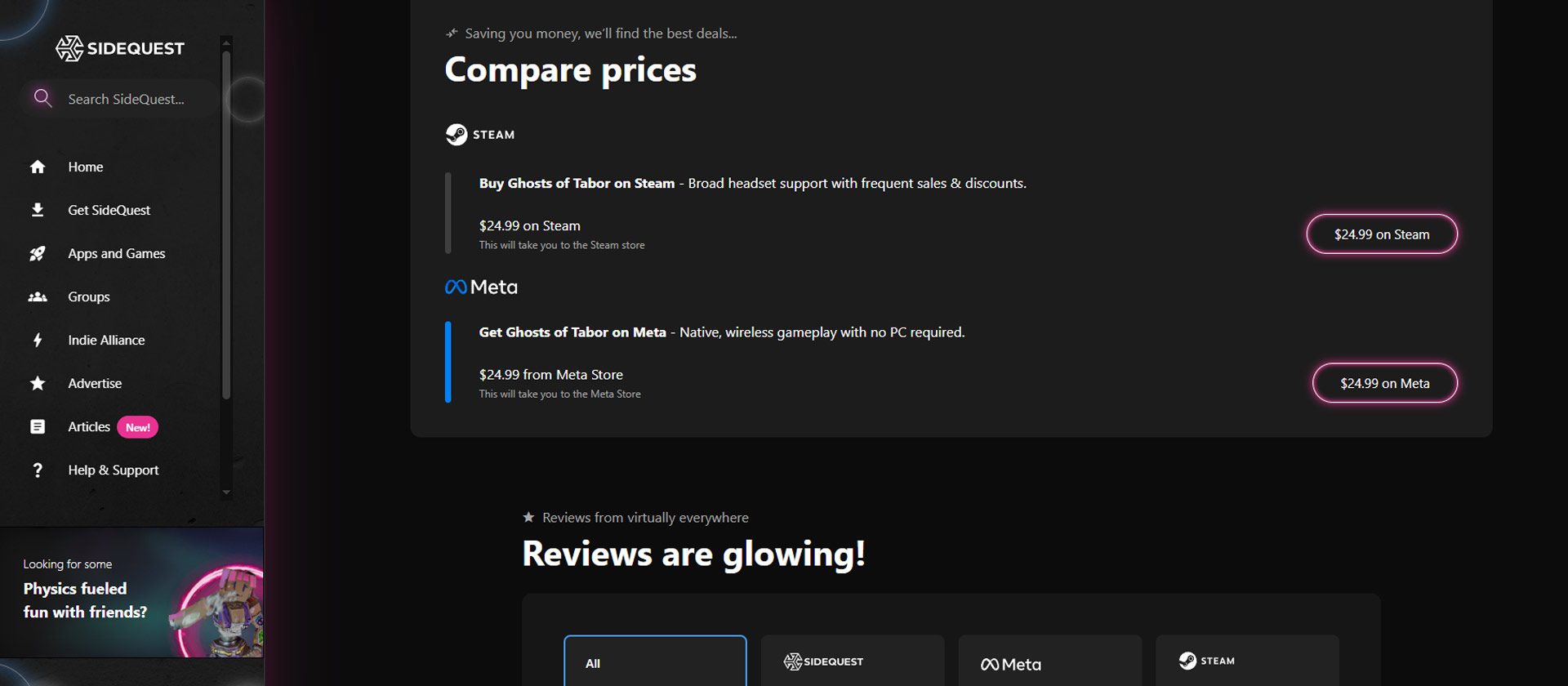 The wrinkle is that Quest users can download and install alternate app stores, like SideQuest, which uses Quest’s ability to sideload Android APKs. But it’s no real competitor to the Horizon Store, and I don’t expect it ever will be.